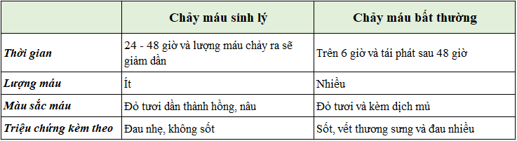 Trong 24 giờ đầu, có thể thấy rỉ máu lẫn nước bọt có màu hồng nhạt.