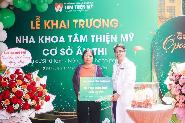 Sau một thời gian chuẩn bị đầy đủ về cơ sở vật chất và đội ngũ bác sĩ, vào ngày 12/10/2024, Nha khoa Tâm Thiện Mỹ đã chính thức khai trương chi nhánh thứ Mỹ 4 tại địa chỉ 175 Bùi Thị Cúc, TT Ân Thi, Hưng Yên.