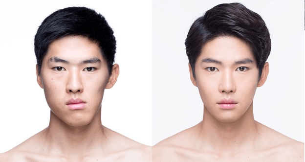 Khuôn mặt cân đối, tự nhiên, nhân trung thẳng hàng.