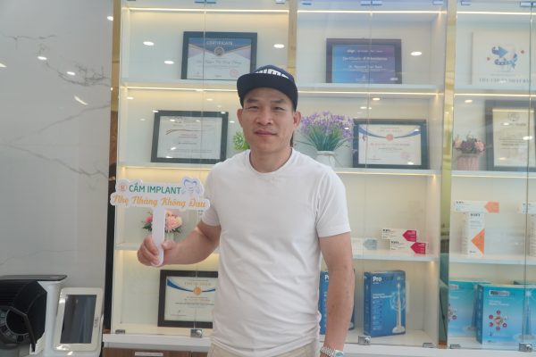 Sau hơn 1 năm cấy ghép Implant, lần này trong chuyến du lịch về thăm bạn bè và người thân; anh Hoan một lần nữa lựa chọn nha khoa Tâm Thiện Mỹ để cấy ghép Implant vào vị trí răng R46 đã mất còn lại. Vẫn là cung cách phục vụ tận tâm ấy, vẫn là sự chăm sóc tận tình khiến anh Hoan cảm thấy vô cùng hài lòng khi một lần nữa bước vào Tâm Thiện Mỹ. Anh được nhân viên đưa đón tận tình, được các bác sĩ ân cần hỏi thăm về tình trạng răng của mình. Anh chia sẻ: “Mặc dù là lần đầu trải nghiệm dịch vụ tại nha khoa, tuy nhiên mình cảm thấy rất hài lòng với cách đón tiếp và chăm sóc bệnh nhân tại đây.”